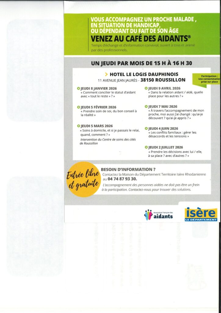 Vous accompagnez un proche malade, en situation de handicap ou dépendant du fait de son âge, venez au café des aidants.