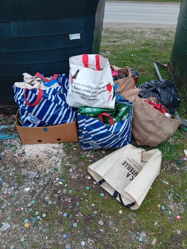 Nous vous rappelons que les bouteilles doivent être déposées dans la benne à verre et non au pied de la benne !